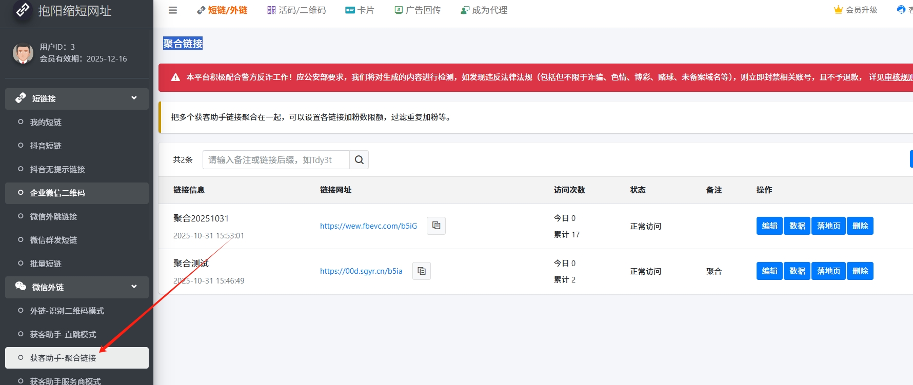 - 如果需要把多个企微主体的链接合并为一个链接,除了使用前一个短链功能,也可以使用【获客助手-聚会链接】