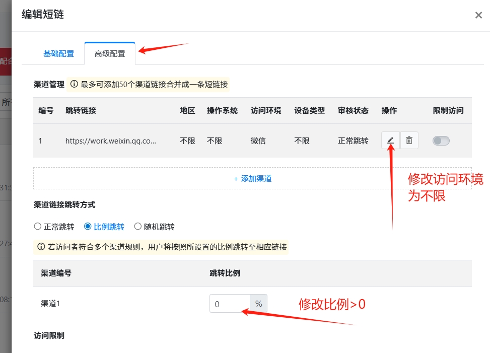 解决方案:在短链的高级设置里,修改跳转的条件,使得跳转满足条件