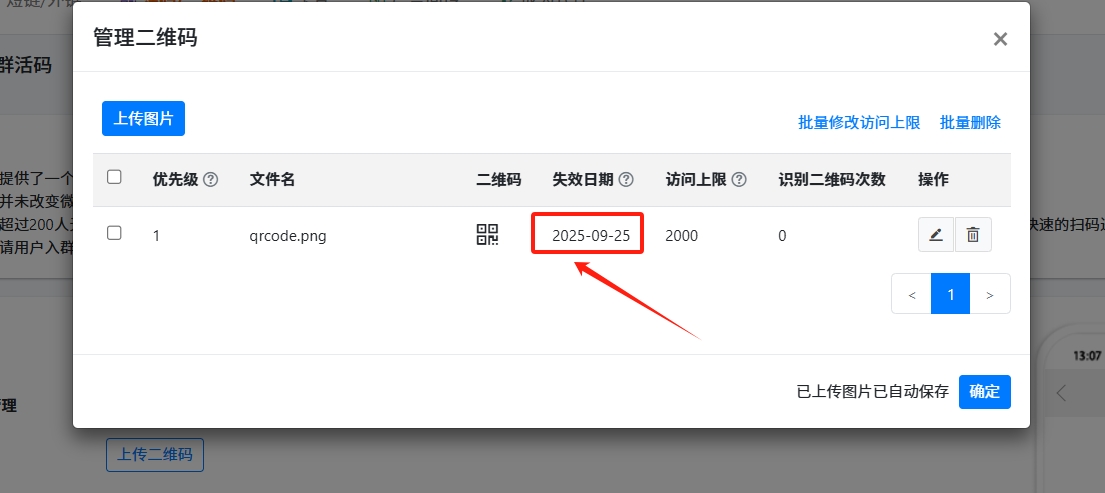 解决方案:在活码的二维码管理里,上传新的未过期微信二维码;或者修改访问上限等
