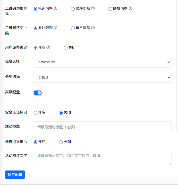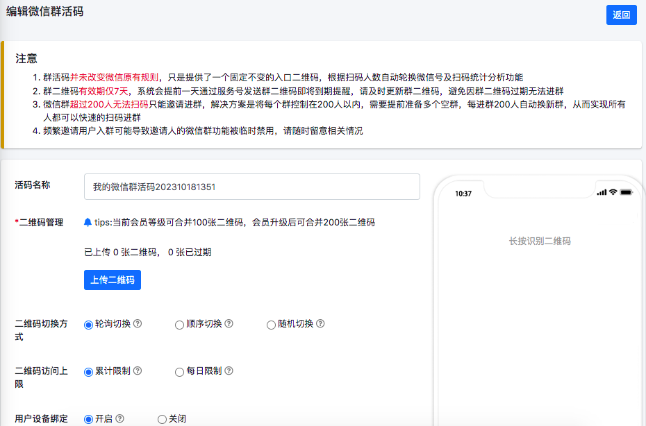 你可以为每个二维码定制分流策略:设置不同有效期、扫码量;