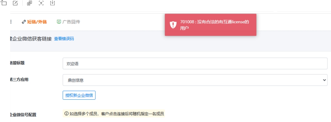 6. 服务商模式下,增加获客助手链接报“701008:没有合法的有互通license的用户”